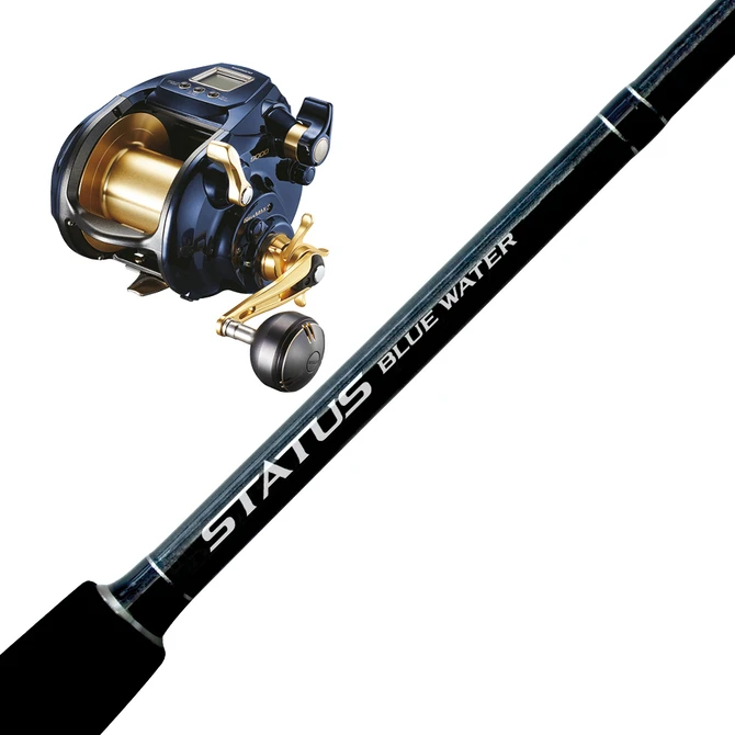 The Shimano Beastmaster 9000A + Status Blue Water Bent Butt rod is Shimanos top of the range electric combo. With the Beastmaster 9000A advanced GigaMax brushless motor it provides unparalleled performance compared to most other electric reels on the market. Paired with the Status blue water bent butt rod its perfect for deepwater drops, Kite fishing, and drone fishing.