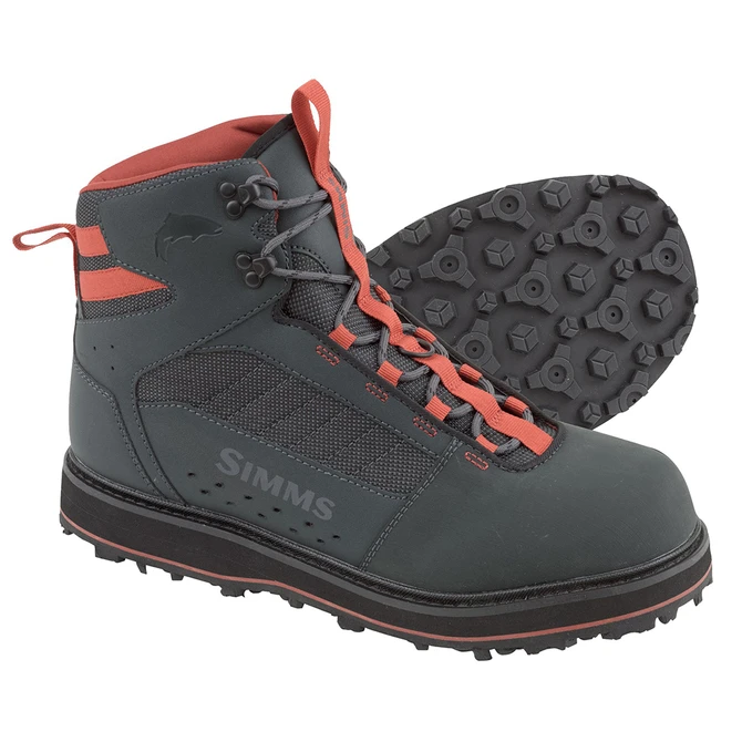 Waist deep in the river with a pushy current testing your balance requires confident footing. Our Tributary wading boot provides the trusted support and traction to help you negotiate slick, uneven river bottoms, while stud-compatible rubber outsoles let you customize your grip patterns to suite your destination.