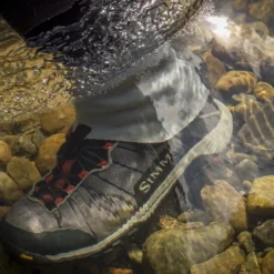 The Simms Flyweight wading boots are the perfect combination of durability and lightweight comfort. These boots will be easy on the legs during long hikes into the backcountry, while still providing all the support you need when wading. The lacing on the boot go all the way to the toes for better tip flexibility. The low-profile design maintains full wading boot functionality and the Vibram® Idrogrip outsole sticks to wet, mossy rocks, and is reinforced for reliable stud and cleat retention.