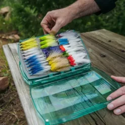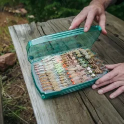 A serious box for serious fly storage. This high capacity box will easily hold the largest bait fish down to your smallest flat’s flies with a “high” side and a “standard” side to offer appropriate headroom for any saltwater fly-fishing adventure. See-through lids allow for easy fly ID and magnetic lid and swing leaf (replaceable) closures offer easy access.
